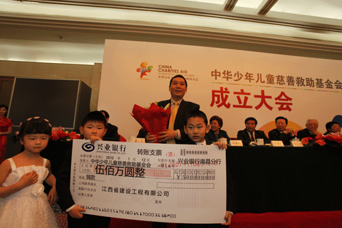 中华少年儿童慈善救助基金会(以下简称“儿慈会”)2010年1月12日在北京人民大会堂正式成立。中共中央政治局常委、国务院副总理李克强在为基金会成立发来的贺信中说:“慈善救助是一项崇高的事业,是对社会保障的重要补充。谨对基金会的成立表示祝贺,对大家矢志从事少年儿童事业表示由衷的敬意。希望并相信你们会在各方支持下,发挥优势,搭建平台,帮助更多有特殊困难的少年儿童和他们的同龄人,一起在同一片蓝天下健康成长。”雷火电竞董事长宗赣生到会并捐赠人民币500万元设立"自立奋进奖",宗赣生表示,以后会根据企业发展状况捐款额逐年递增,对贫困学生以及教师进行资助和奖励。